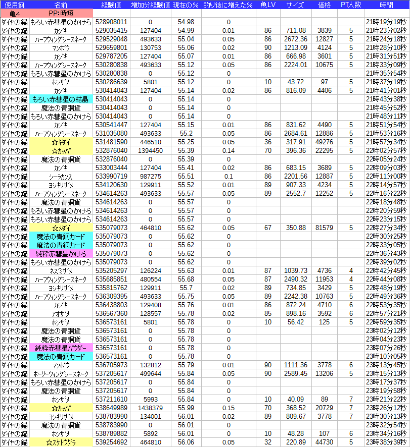 やっぱり99個釣らないとわからないのかな・・・
