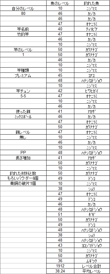 今回は2山だけ釣ってその後↓の記録をとっていたので