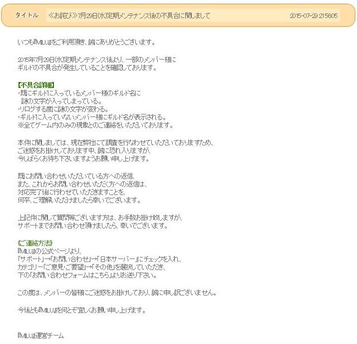 おぉ!ギルド表記がおかしい不具合か!?早速修正されるまでにログインしなければ!!!