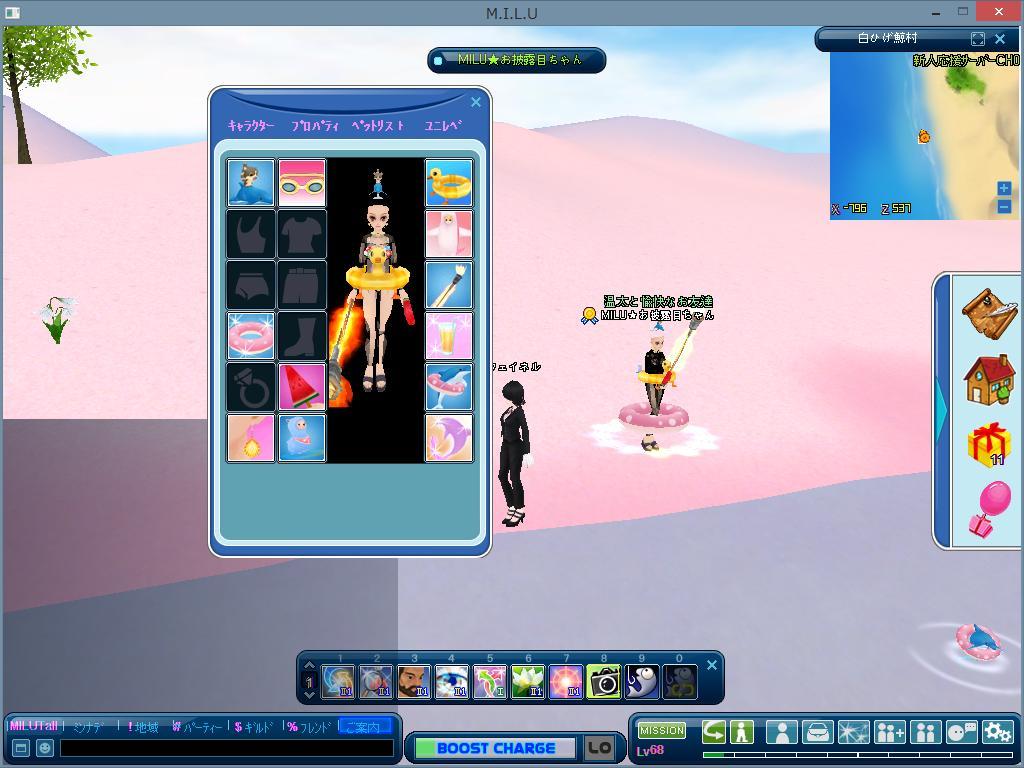 浮き輪のミルウェイとか海水浴用のイベものが多くあります。翼も浮き輪です。最初はお披露目ちゃんしかいませんでした。被りイルカはイベ王で見かけましたね。