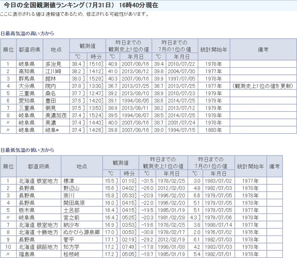 今日は東海が暑かったのね^^ |
