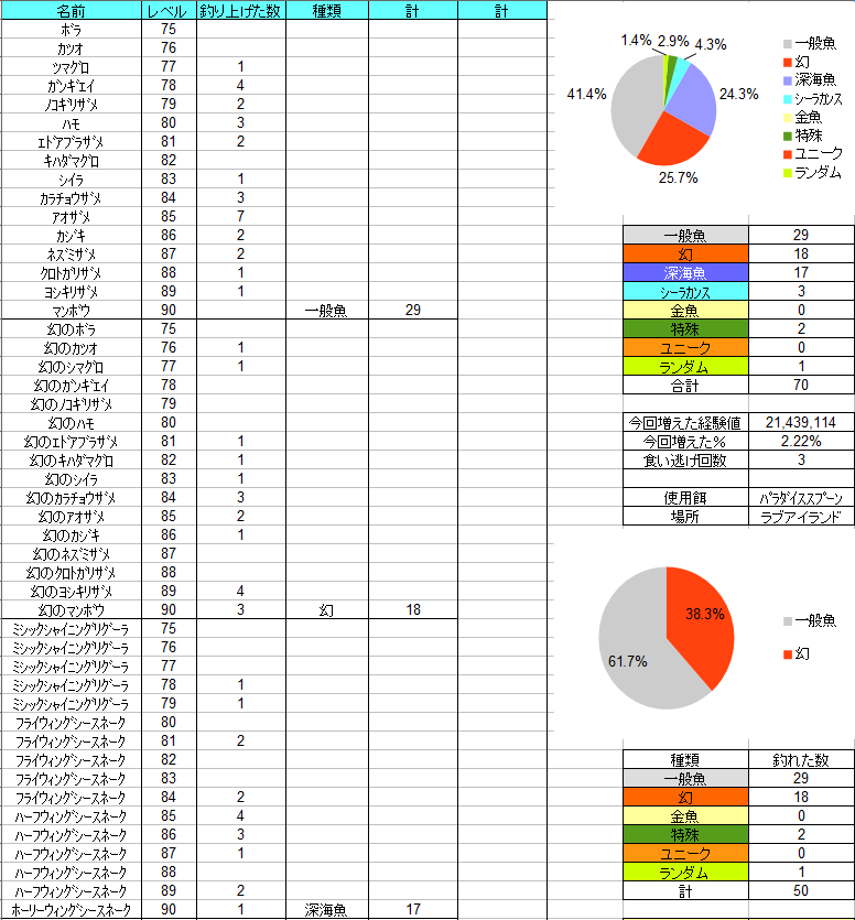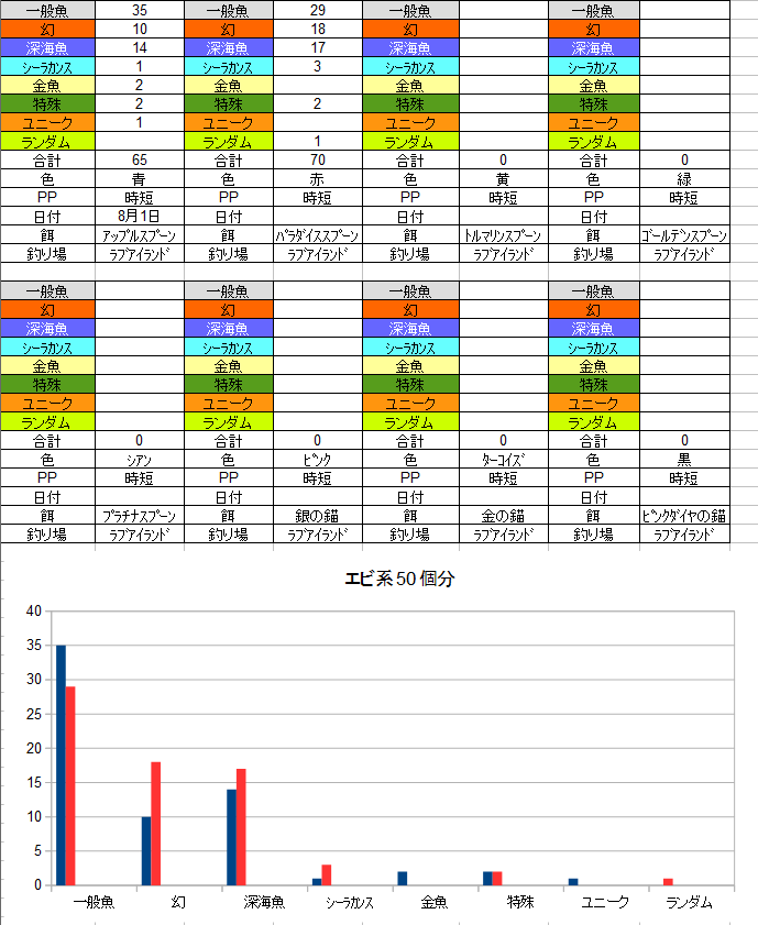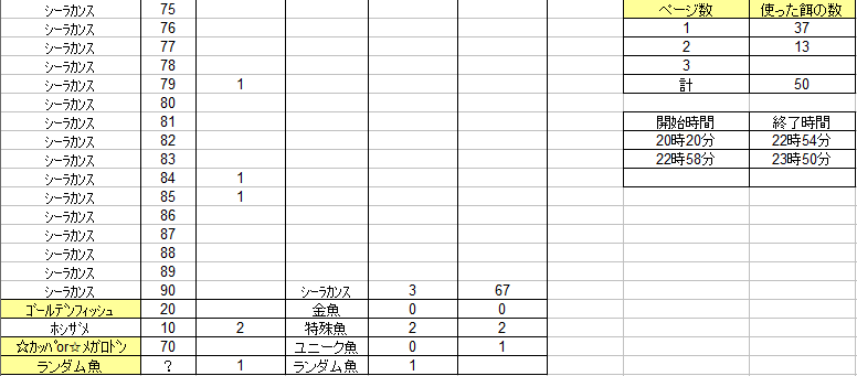 残りの餌は6種類ですがピンクダイヤは入手が難しいので