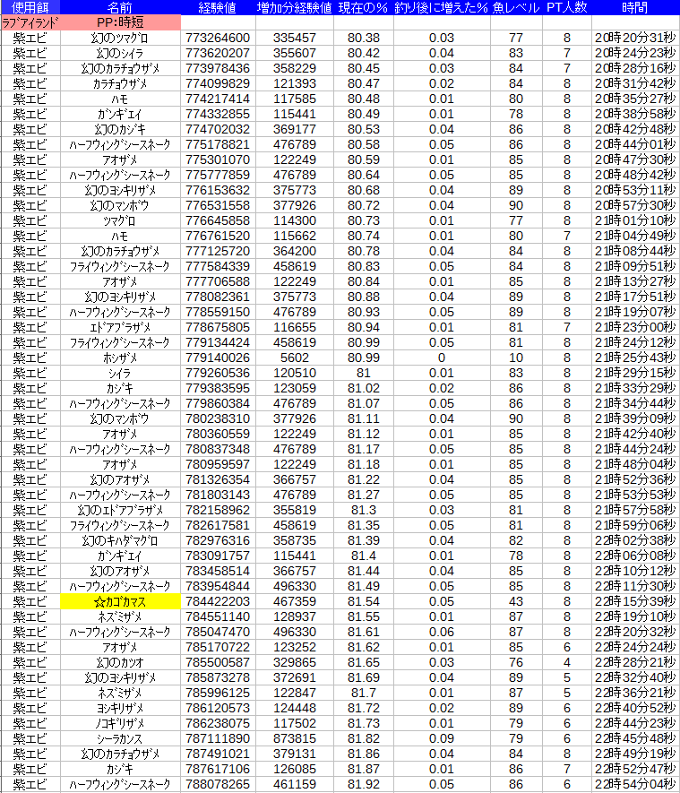 あとある問題は、エビは経験値が多いので