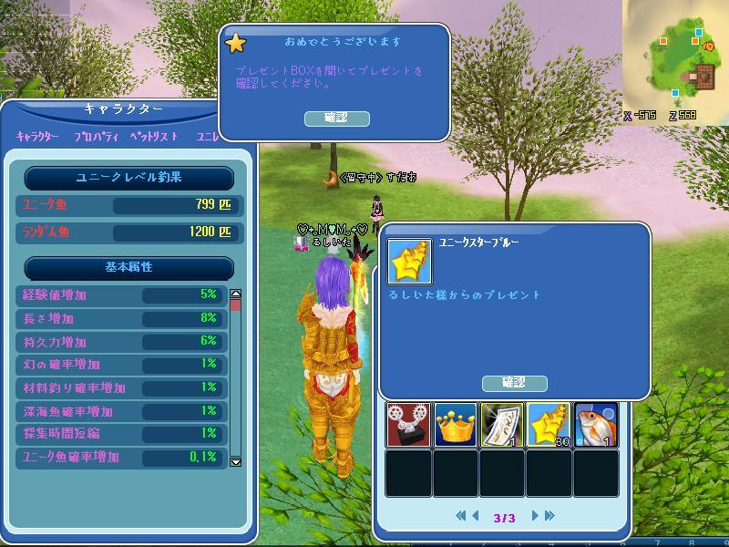 報酬はぁ、ユニークスターブルー30個w(v^ー°) ヤッタネ