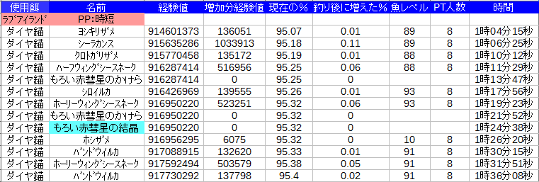 未だに95までの魚が釣れてるのでグラフの91のとこが凄いことになってる(´;ω;`)