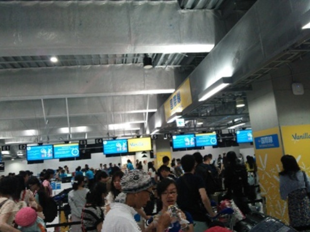 集合8:25、出発予定10:25。やっとチェックイン思ったら、遅れに遅れて、12:25分発に。