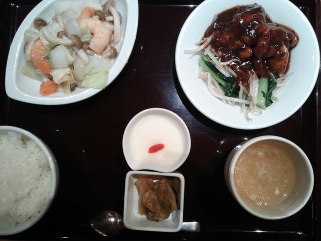 炒めものも、とろみつけた塩味なんだけど、しめじやにんじん、エビの味がしっかりあってけっこうおいしい(*゚-゚)