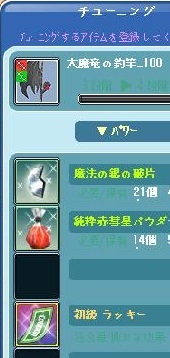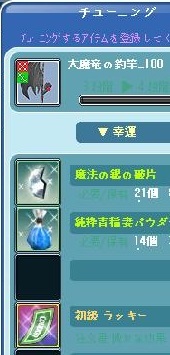 先々週、チューニング確率アップキャンペーンがあったので、3-3までチューニングしていた大魔竜の釣竿100をチューニングしましたぁ~^^