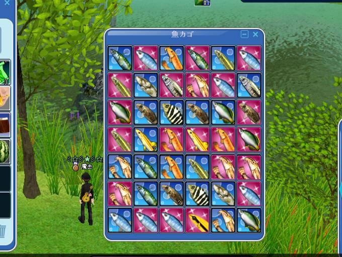 それに淡水と海水、PPのこと、キャラのレベルと竿のレベルの関係などなど、考察することが多く、ラスト2時間くらいは、PTに入ったり、海のメッセージとかかけたり、疲れに伴って散々な検証結果になったので、自由研究として発表しませんでした。