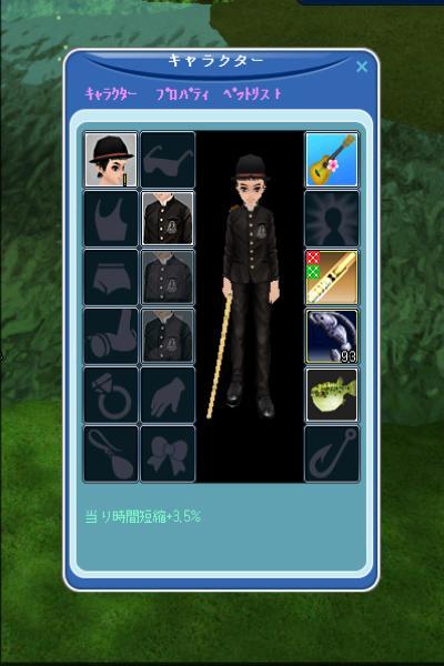 噂に忠実に、プレ竹は一応5段階フルチュンとして、装備は、属性の無いLv30の帽子を買って、オーバーチュンできるまで時短をつけて釣ってみました。