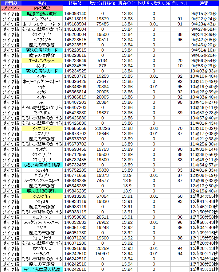いつもここで釣ってるけど1山分のデータが欲しいとか