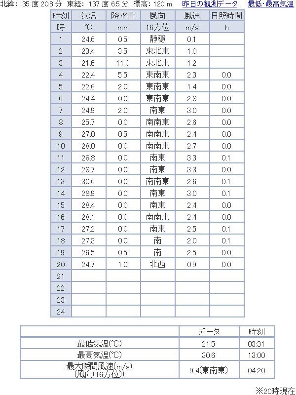 明日もAM3時位でやんで予想34℃またムシムシだなぁ・・・_| ̄|○・・・はうぅ・・・