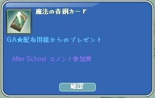 ◇コメント参加賞(1日ごと):魔法の青銅カード1枚