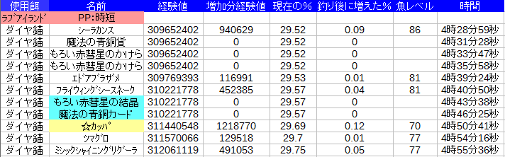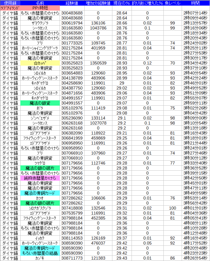グラフの方とかレベル差のせいで一番上と下しか魚のチェックついてないし・・・