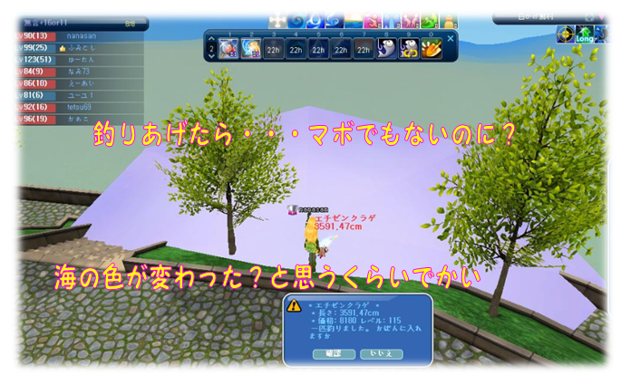 今レベル90ですがこのところおそらく115までのレベルの魚