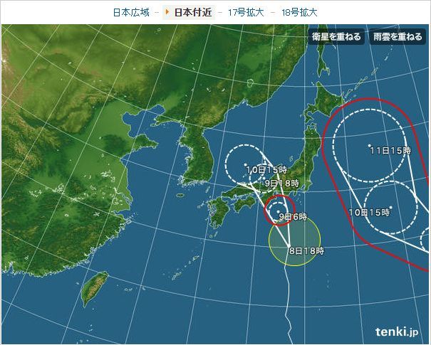 おお、若干西に向って進路変わりましたね>18号・・@@;