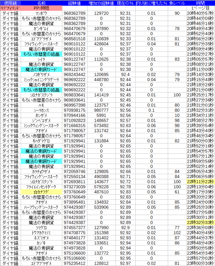 正確には現在魚項目(材料込)が35マスなのが95マスになりますb