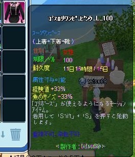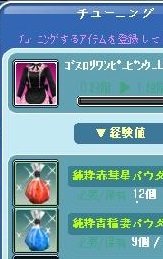 今チューニング確率2段階まで100%なので、以前作っておいたレベル100の服のチューニングをしておくことに・・・