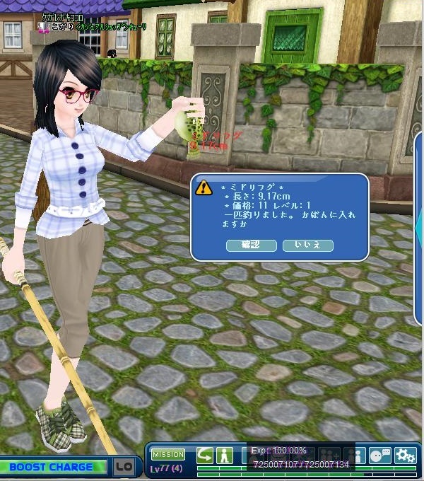 眼鏡(+25%)のみを装備した状態でミドリフグを釣ったらちょうど27Pになるのです。
