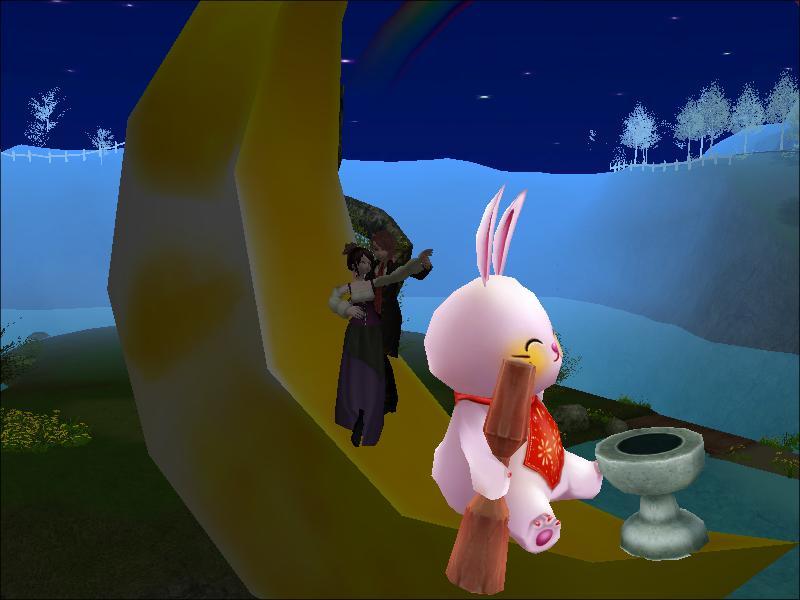 月で ウサギさんが お餅をついているみたいなので