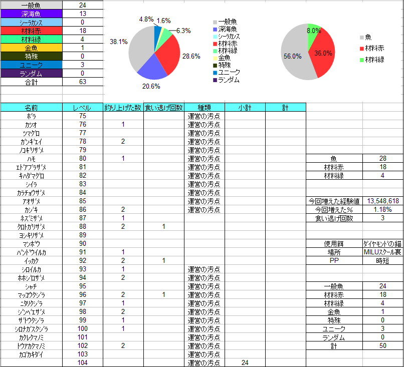 今までの各種竿での釣れるレベル幅の記録撮り直しじゃないですか・・・