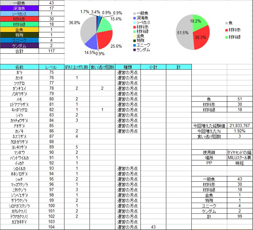 今回は魚の連続が多いのでもう少しばらけてほしいところでした