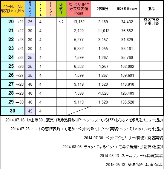 ペットの愛情ポイント L20超えたら 省エネなのね