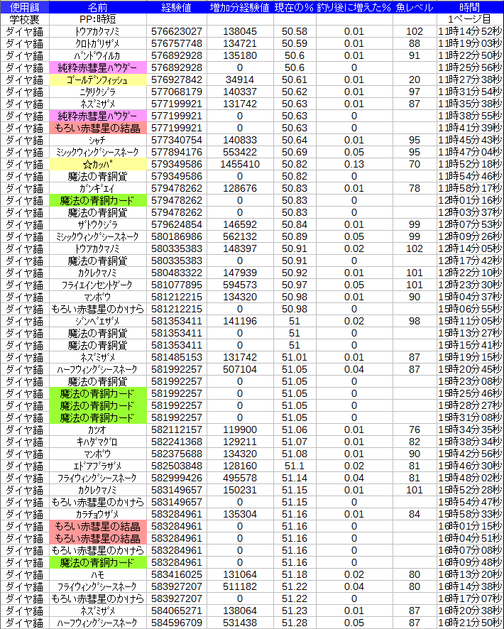 経験値美味しい子も少ないので上がりが微妙です
