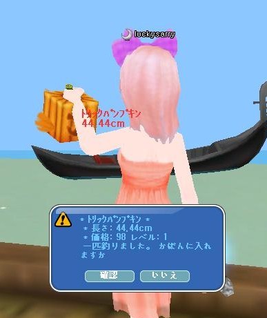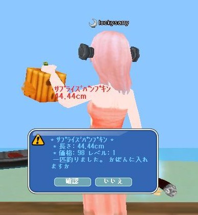 割と早く、ピンクカボチャが釣れました。