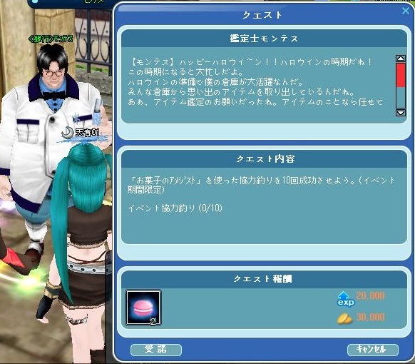 2015ハロウィンイベント ~ 1週目 ~のクエスト「 特別なお菓子をあげよう 」をクリアしてることが条件です。