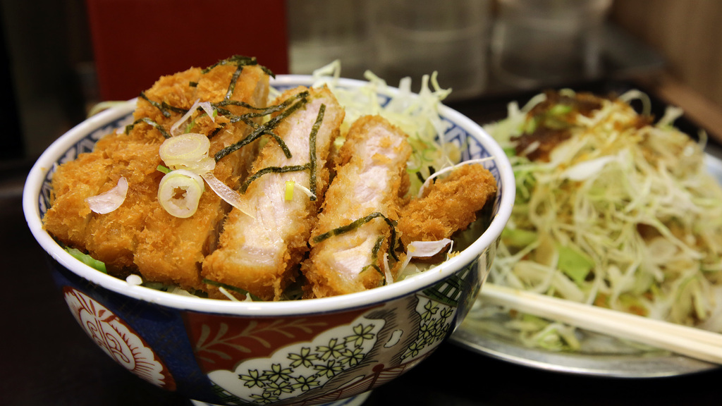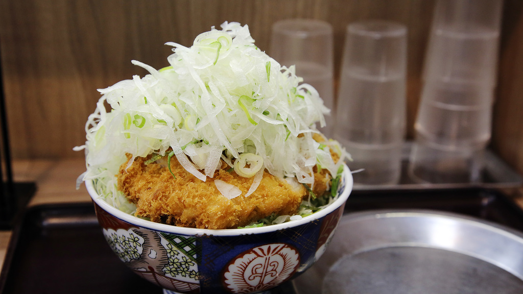葱ハ"カ肉厚醤油ダレかつ丼。