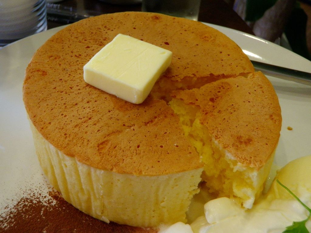 直径:約15cm、厚さ:約5cmの「超厚焼きパンケーキ」で、オーダーしてから出てくるまで20分というモノ