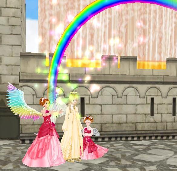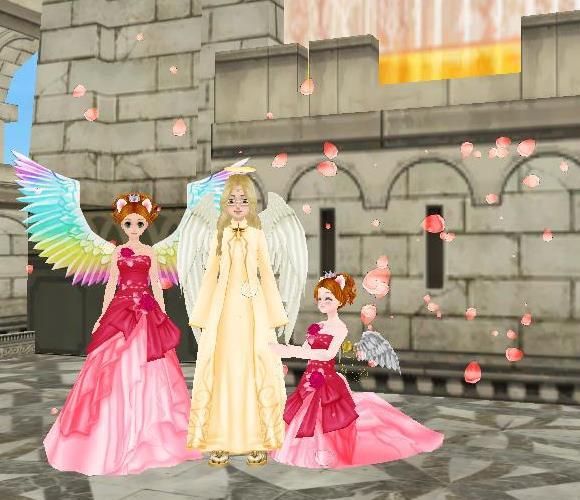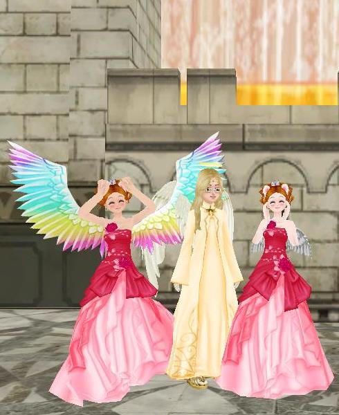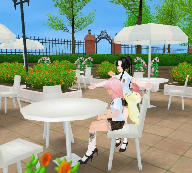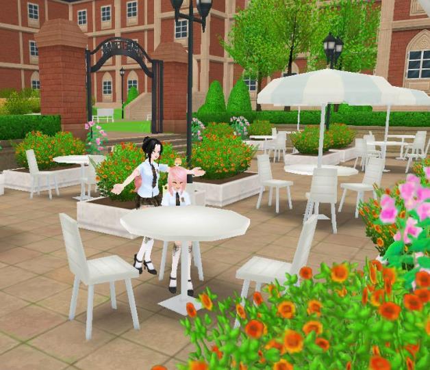 STARSCHOOLのカフェテリアで♪ネコ天使ウエディングドレスの耐久が切れる前に~❤ポンは、今回のイベモノのエモが見えないらしい・・「まぁ❤」は、これだよ☆色々出してみました~よっとw花婿どこだ?w