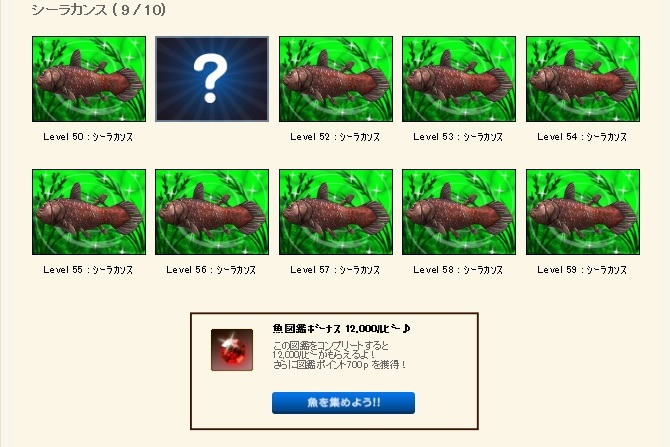 9月から魚図鑑50竿を使って釣ってるのにレベル51のシーラー来ないなー