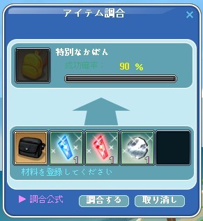 最後が90%なので挑戦しやすいですが、材料が集まらないのがいつも難点でしたが・・・調合頑張りました^^;