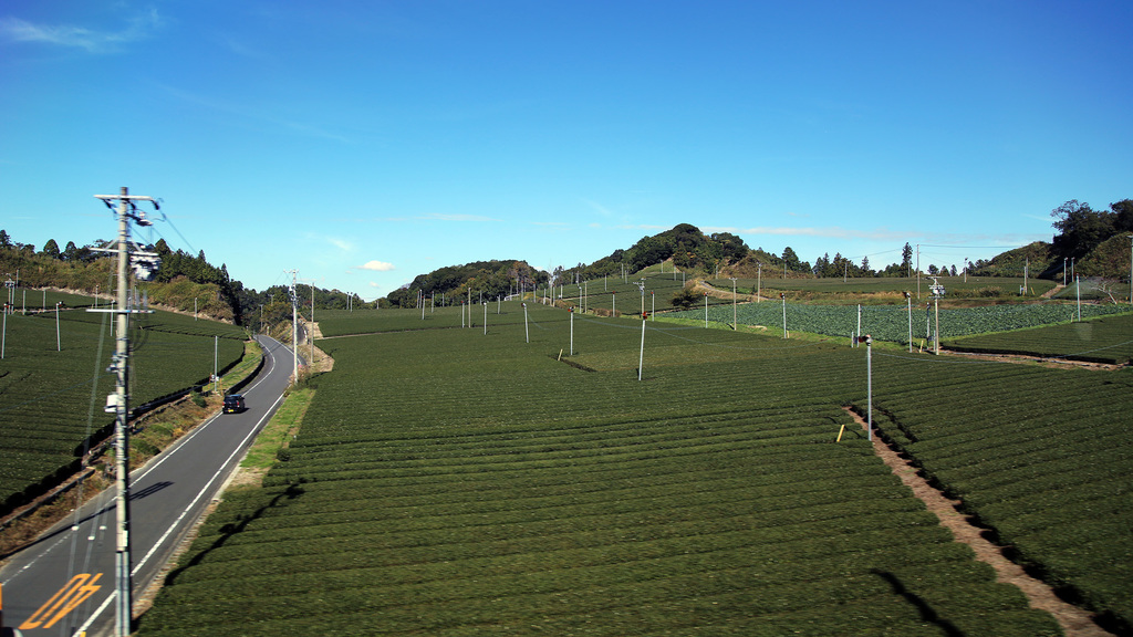 茶畑。高速で走る車内から撮るのけっこうむずいw