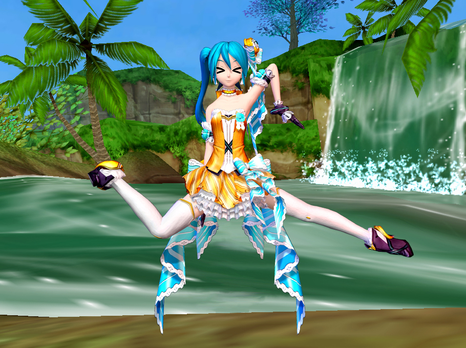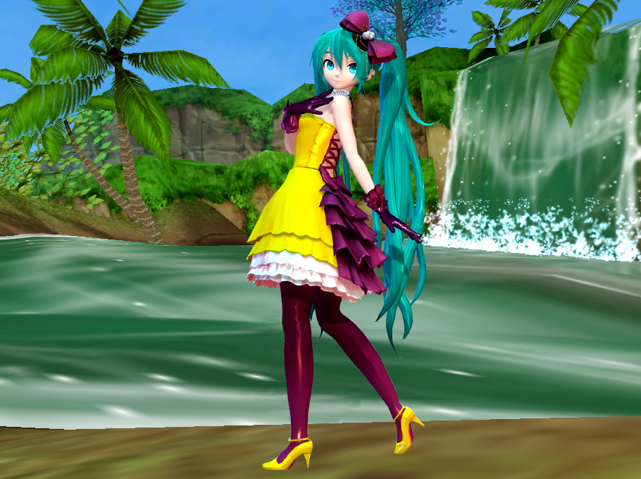 今日のミクさんは滝を背景