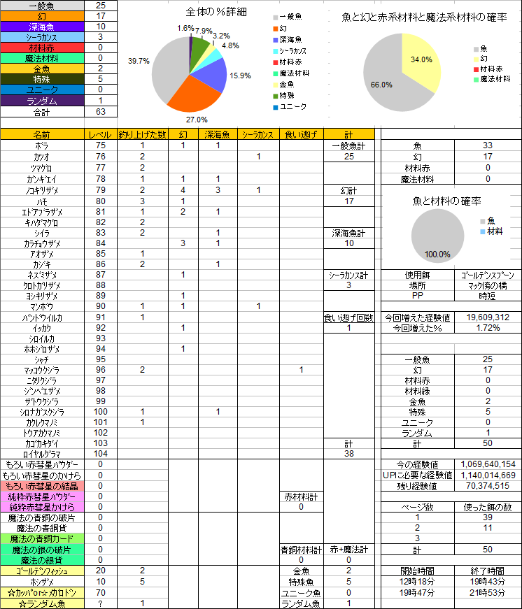 深海とシーラカンスの数は材料釣りの時と大差ないかな?