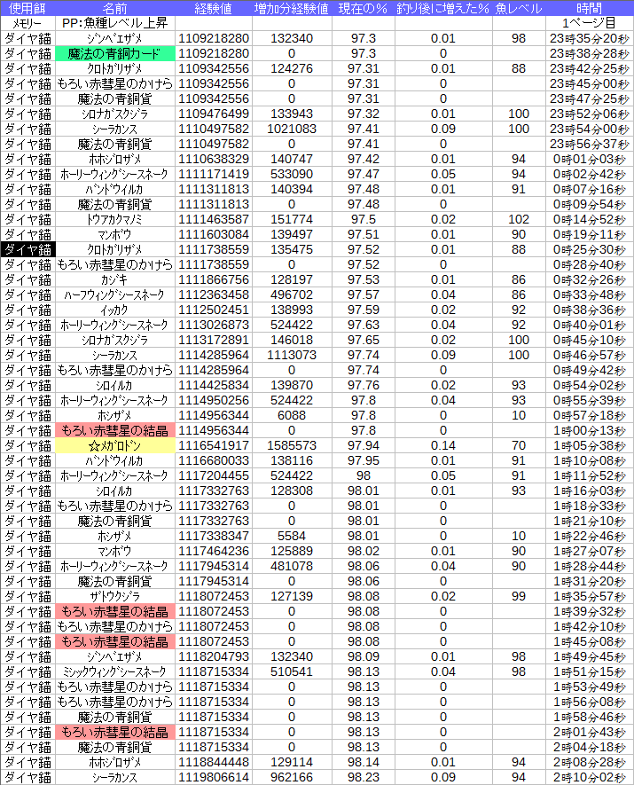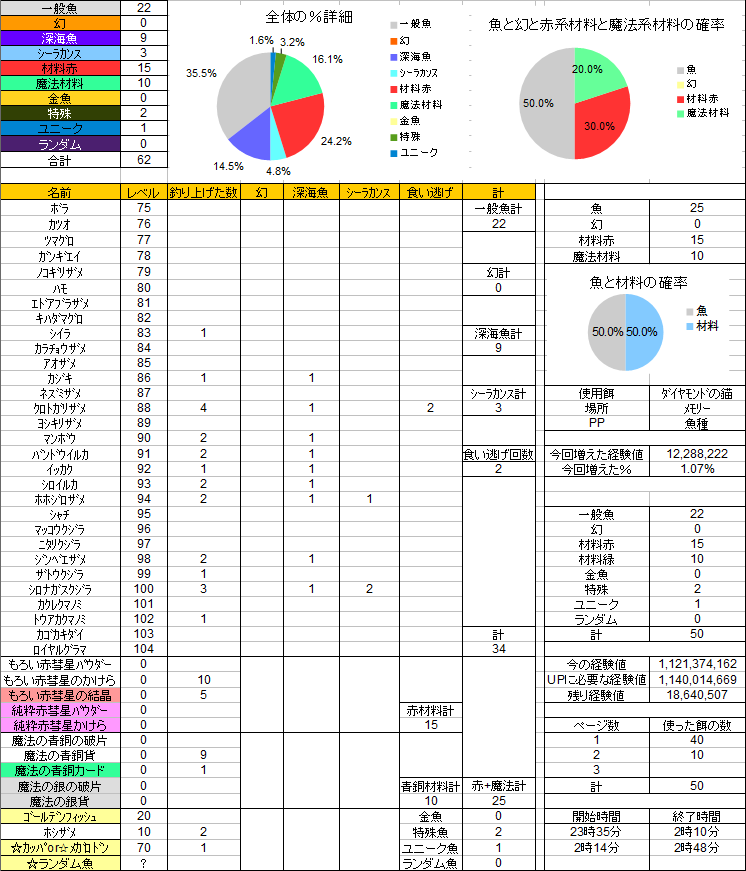 今のところどのPPでも、そして属性の魚サイズが下がっても