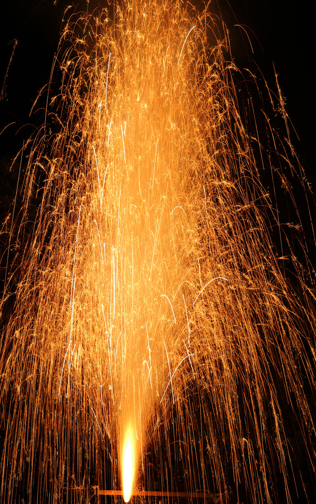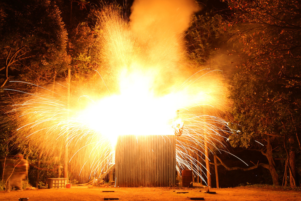 これは花火業者が作った打ち上げ花火ではなく、竹筒に火薬を詰めたものを地元の人が作ります。