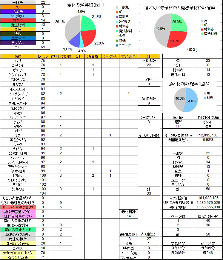 今回から食い逃げは魚の項目を黒くしました