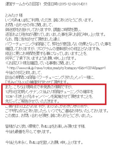 話しは変わりますが、竿のチュンの件で運営に問い合わせました。