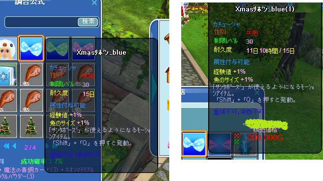 露店で売っていたこちらのりぼんと、調合でできるりぼん、同じものでは・・・???