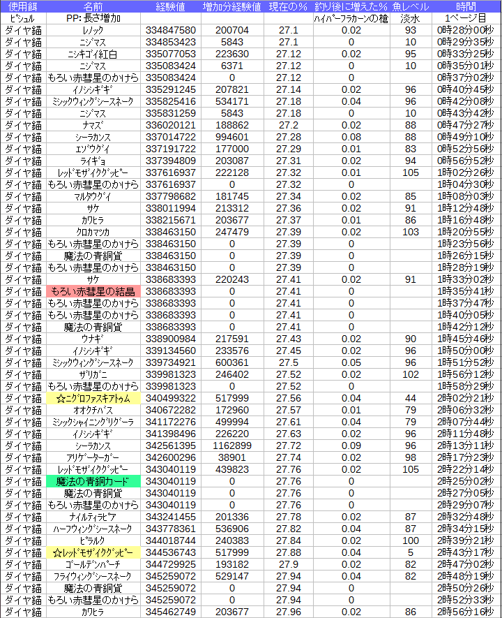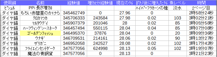 今の経験値属性で釣ると