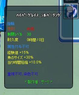 丁度深海魚の精密で指輪のカケラが出たので指輪に決定ー