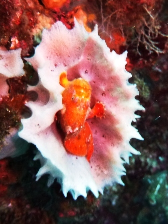 カエルアンコウがカイメンの中でお休み中w