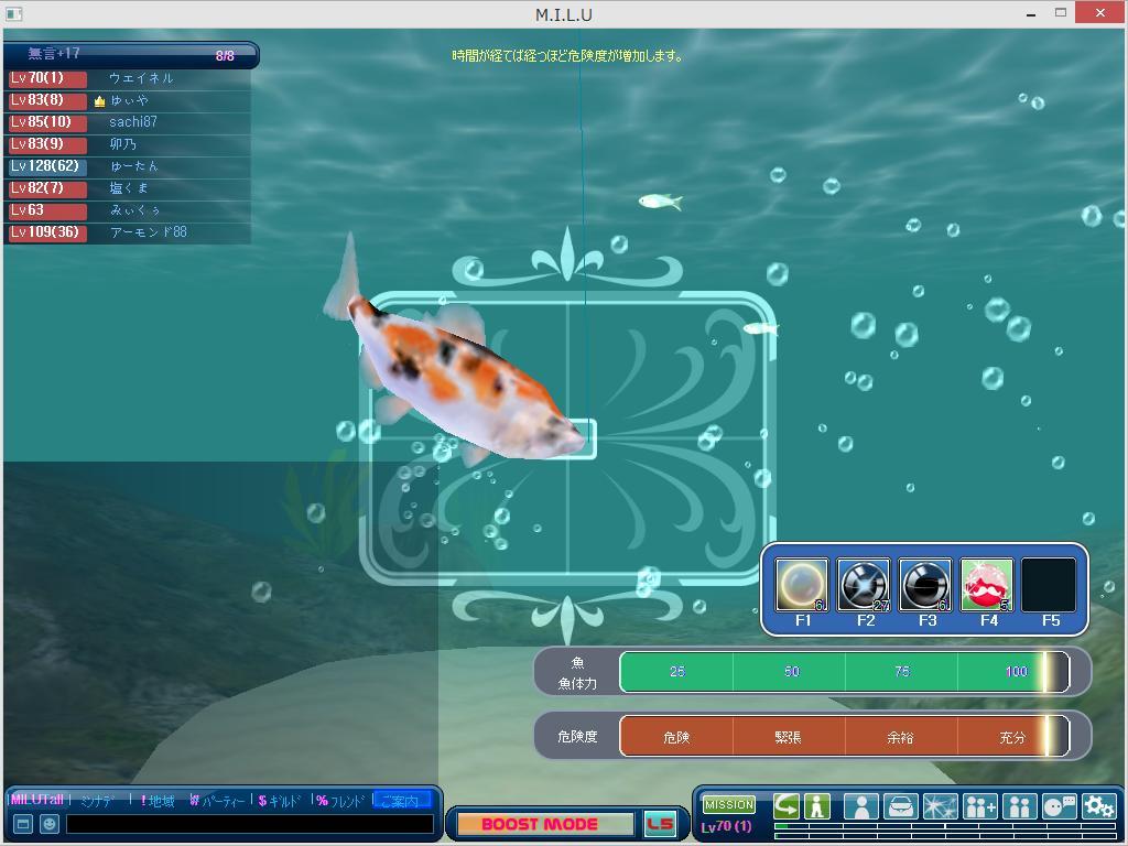 ランダム魚のニシキゴイが初めてつれました。今までと音楽が違って泡が出ていました。