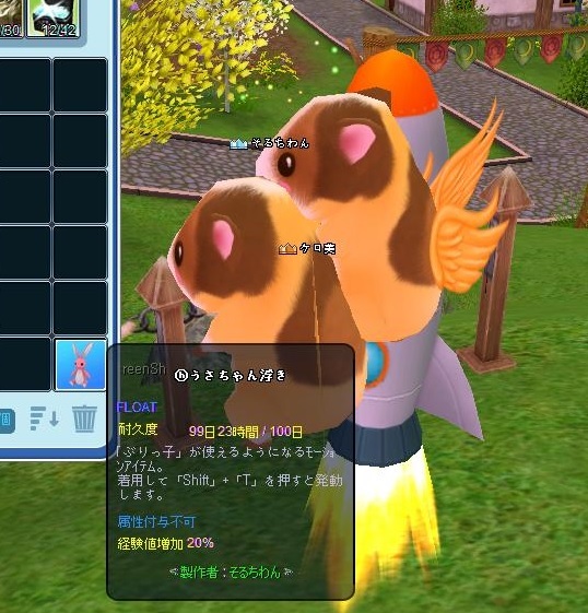 うさぎの浮き、イベントで出てきてそるさんが使用しているのを見て、かわいーー!欲しいなーと言っていたのです。自分でチャレンジするも、なかなかうまくいかず諦めていたケロでした。材料が比較的手頃+どうしても欲しいもの以外は、何回までチャレンジしてできなかったら諦める!ってタイプの調合をやっているのです。そして今回のイベント、なかなか調合うまくいかなかったのよ。
