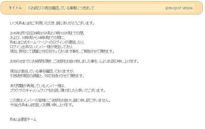 | 公式も開かなくてMILU終わったかと |