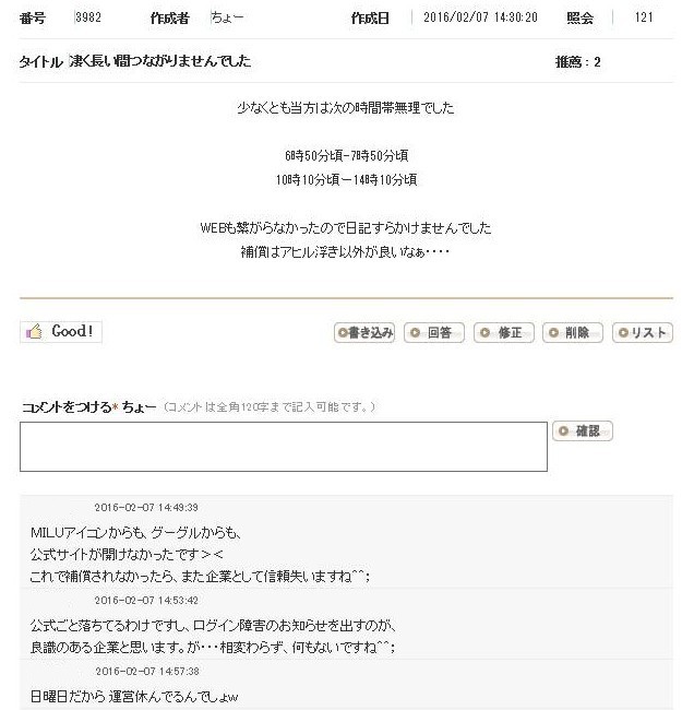 | 午前4時前に不具合が起きてました(:D)⌒┐ペコッ |